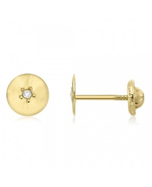 Cercei pentru bebelusi/copii din aur galben de 14K, rotunzi cu diamante naturale.