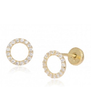 Cercei pentru bebelusi/nou nascuti din aur galben de 14K, in forma de cerculete cu pietre albe zirconiu.