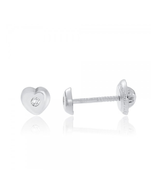 Cercei pentru bebelusi/nou nascuti din aur alb de 14K, in forma de inimioare cu o piatra naturala diamant.