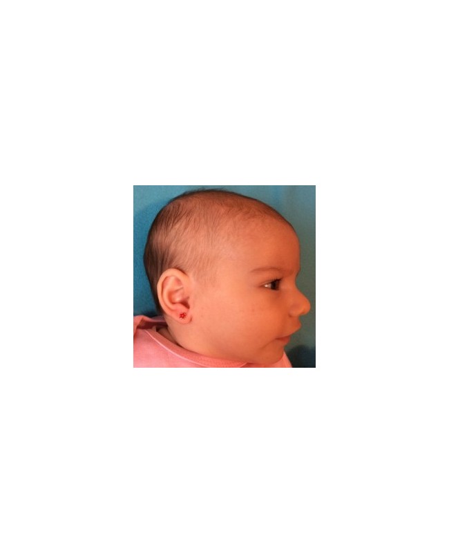 Cercei din aur galben 14K pentru nou nascuti/bebelusi, forma de floricele rosii.
