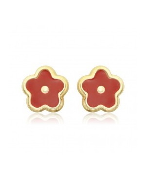 Cercei pentru copii din aur galben de 9K, in forma de fluturasi de culoare rosii, emailati. Cerceii sunt plini.
